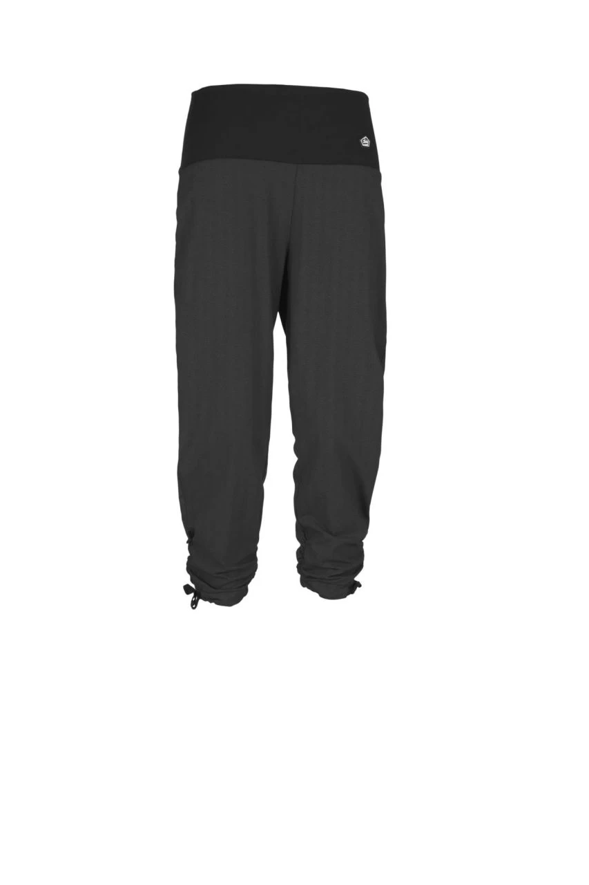 Die Ilona für Damen von E9 ist eine superbequeme Dreiviertelhose, die sehr elastisch ist und sich dadurch nicht nur zum Klettern hervorragend eignet. Auch der Hüftbund ist auf Komfort ausgelegt, sehr elastisch und hat keine Reibungsstellen. Die Beinabschlüsse sind gerafft und sind durch ein eingezogenes Bändchen verstellbar. Das Muster der Hose ist mit vielen kleinen Pünktchen dezent, aber feminin gestaltet.